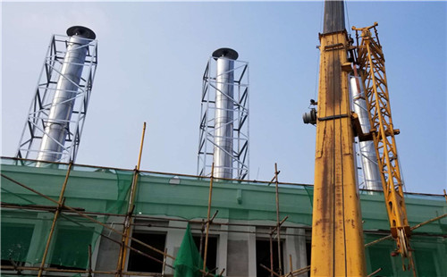 2、拆除烟囱时要尽量减小粉尘的影响,人工拆除是采用风镐对烟囱自上而下粉碎性拆除,高空扬尘较大。针对性措施:在施工脚手架的外侧悬挂绿色2000目安全网,该安全网具有一定的强度,既可减轻粉尘的影响还可遮挡碎渣。